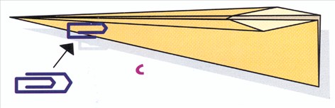 Hvis flyet er for haletungt, kan balancen ændres med en papirclips i næsen.